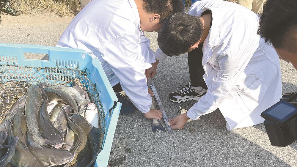 为此,湿地学院专家团队专门配套研究了“种养一体化”技术,将从盐碱地脱盐排出的盐碱水引入田边挖好的田头塘,精心选育适合的鱼类品种进行养殖。这是一项基于自然的解决方案(NbS),目前已经获批江苏省科技厅重点项目。
